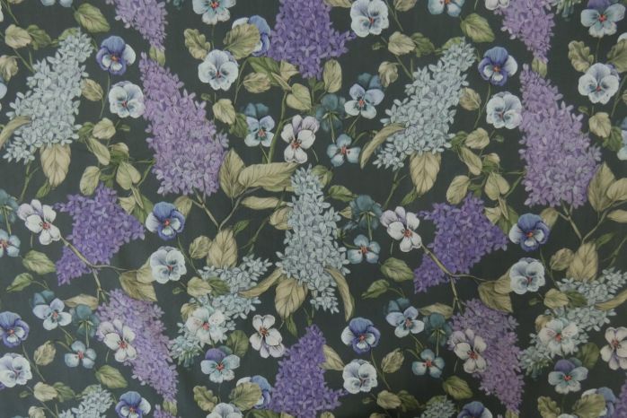 A Lovely Cotton Marlie-Care Lawn Digital Floral Print in Tones Of Dark Green, Violet, Steel Blue & Ivory