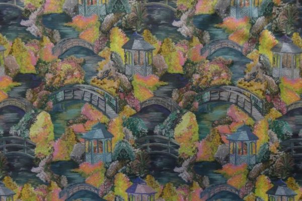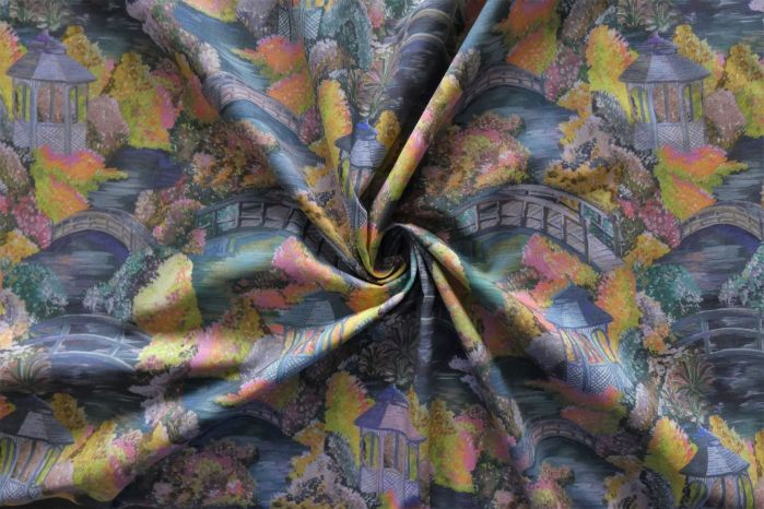 A Stunning Digital Print in Lime Green, Peaches, and Smoky Blue.