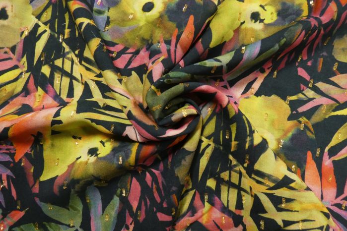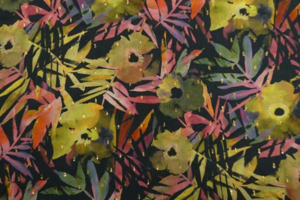 A Beautiful Drapey Viscose Vienna Lawn With Elegant Viscose Dobby Threads Digital Abstract Exotic Print In Tones of Navy, Green, Pink, Orange & Red