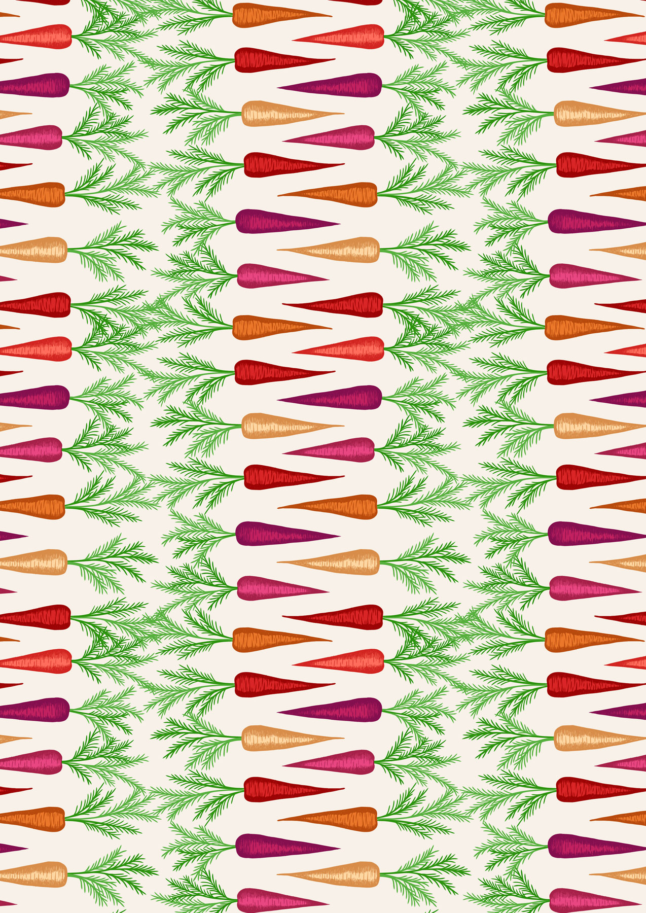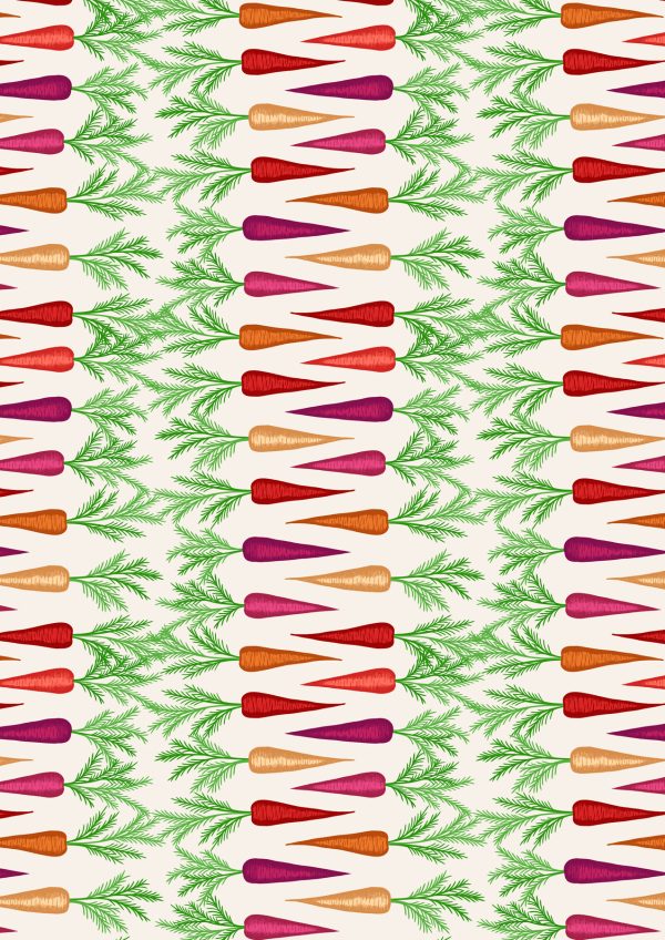 An extravaganza of vegetables! Whether you grow your own or just enjoy eating them, these delicious fabrics showcase the best of the kitchen garden. Pretty nasturtiums, often grown in a vegetable patch, feature as a companion floral.