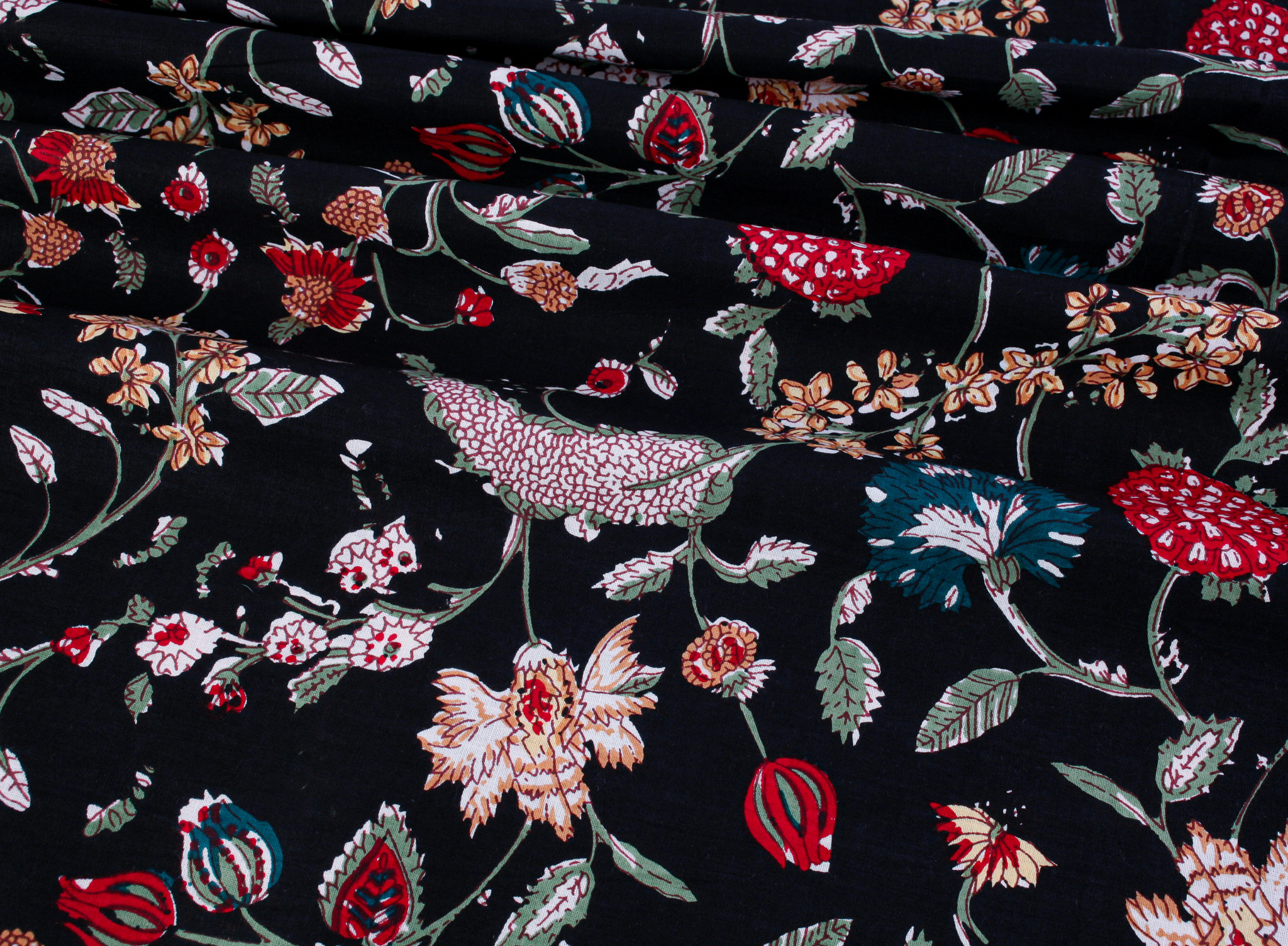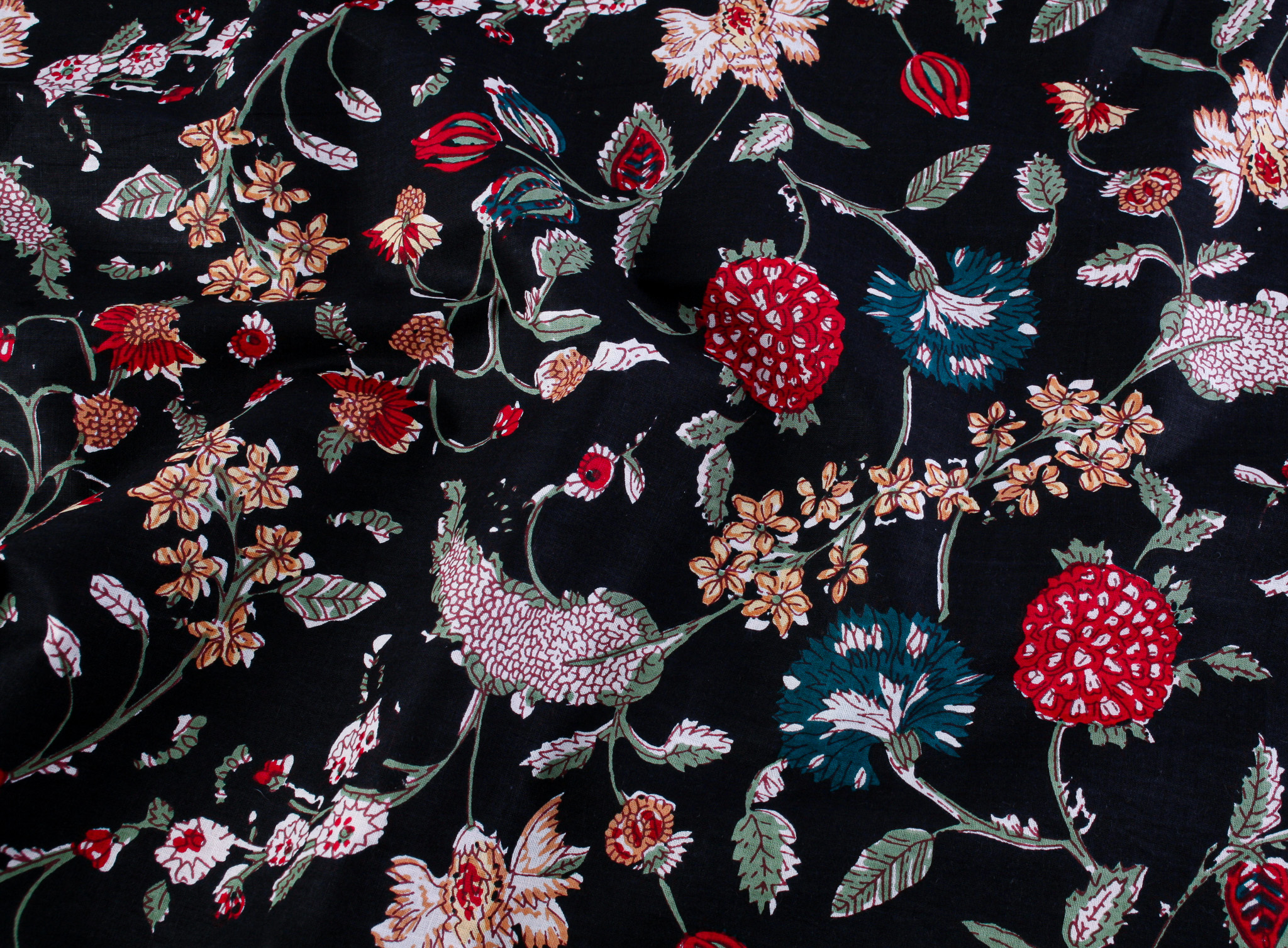 Stunning hand-block printed fabric with natural colours by Artisans in Jaipur, India, bought in directly from the makers. This fabric is perfect for dressmaking as well as bags and home décor items.
