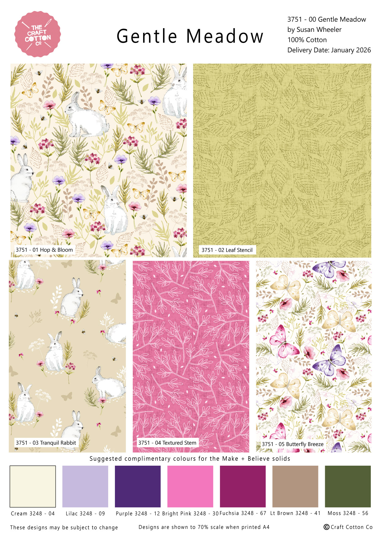 A selection of 5 fat quarters, featuring rabbits and flowers, designed by Susan Wheeler. Perfect for crafting, quilting, children’s projects and pet accessories.