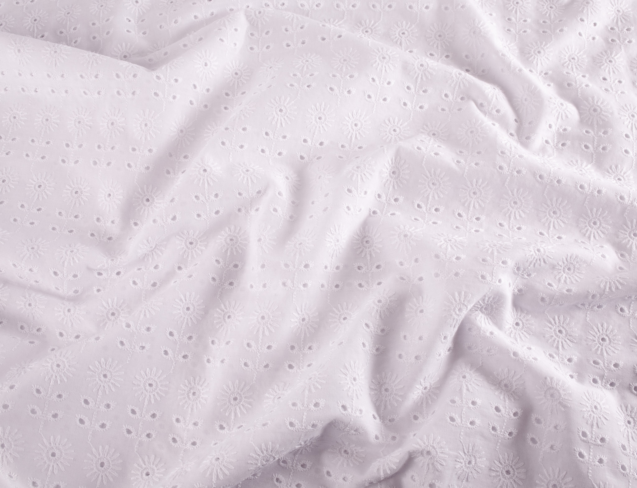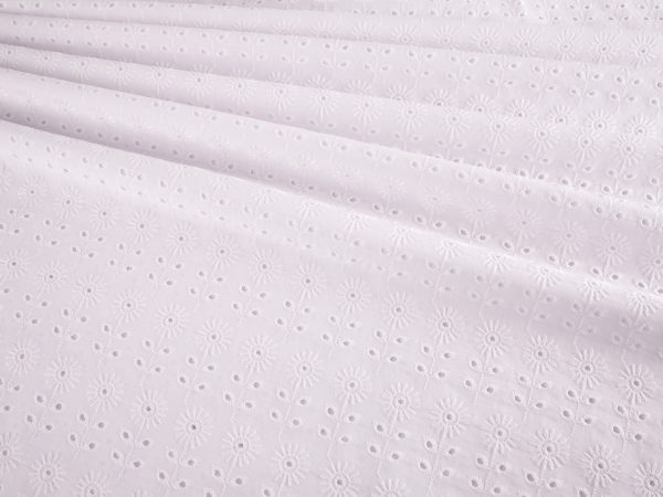 Beautiful embroidered white-on-white sunflower design on soft 100% cotton voile. Light and eye-catching. Perfect for creating blouses, skirts, tunics and dresses