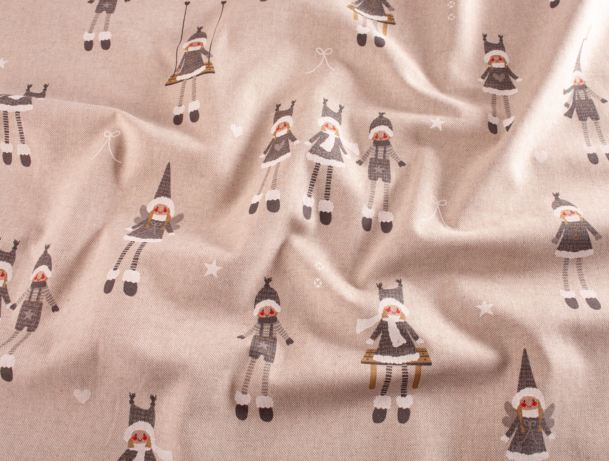 EOB Cotton Panama – Linen Look Christmas Winter Dolls 0.5m piece