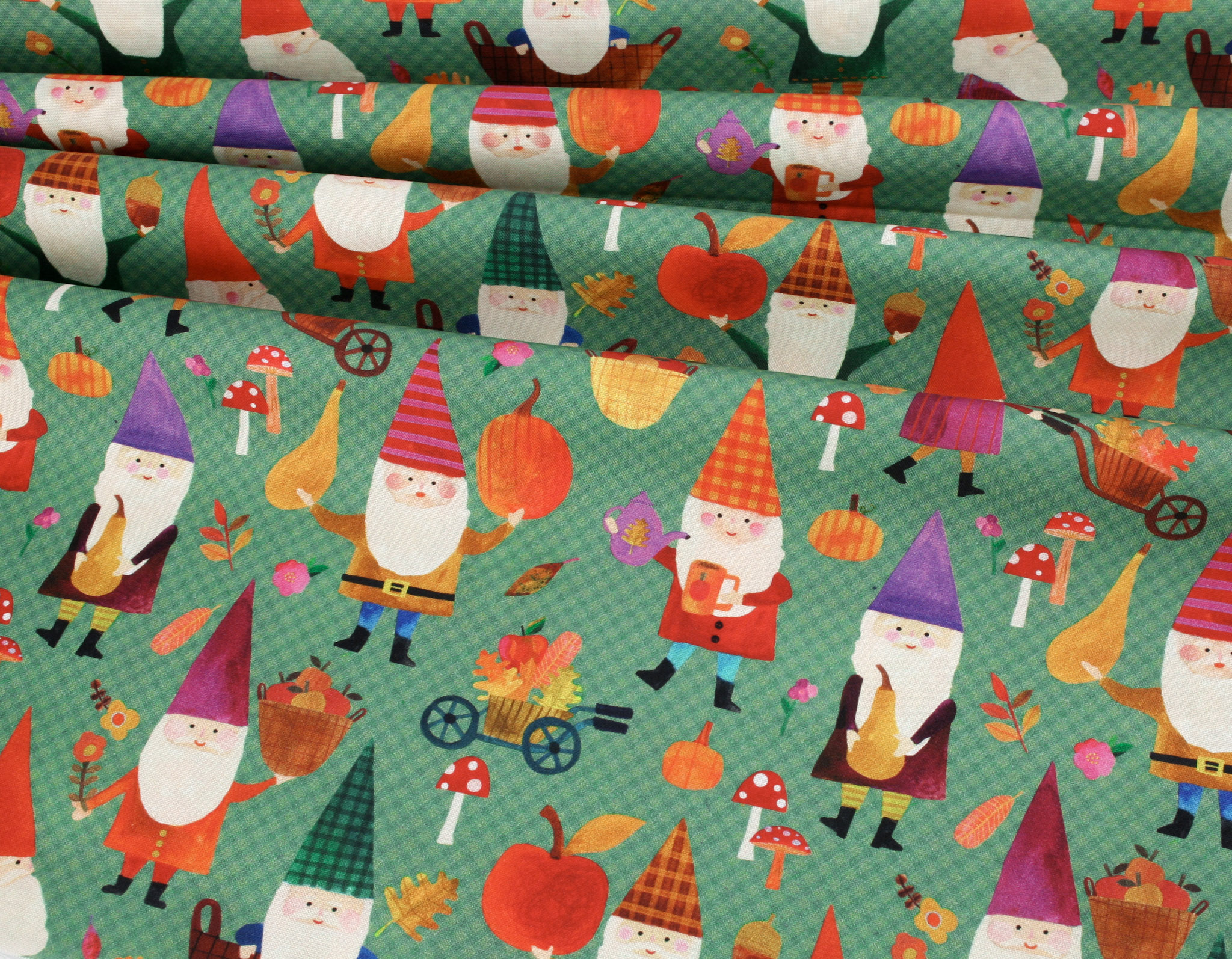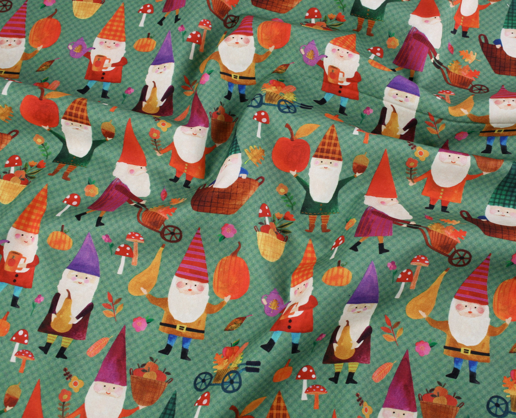 Michael Miller – Autumn Breeze: Gnomes on Green Plaid