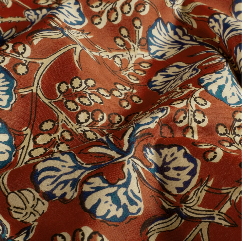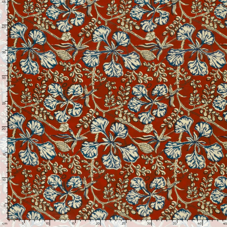 Modelo Fabrics – Beige And Blue On Copper Leaves Indian Block Print In Cotton