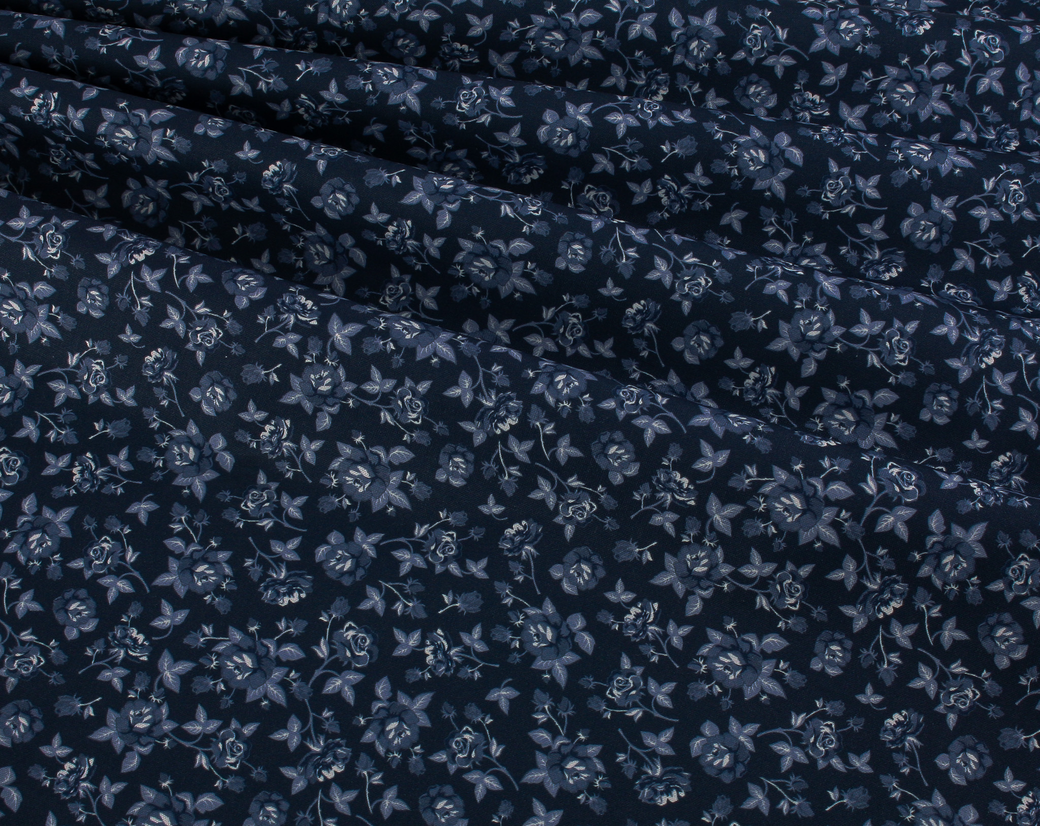 Poppie Cotton – Lakeland Blues Elegant Roses Dark Blue