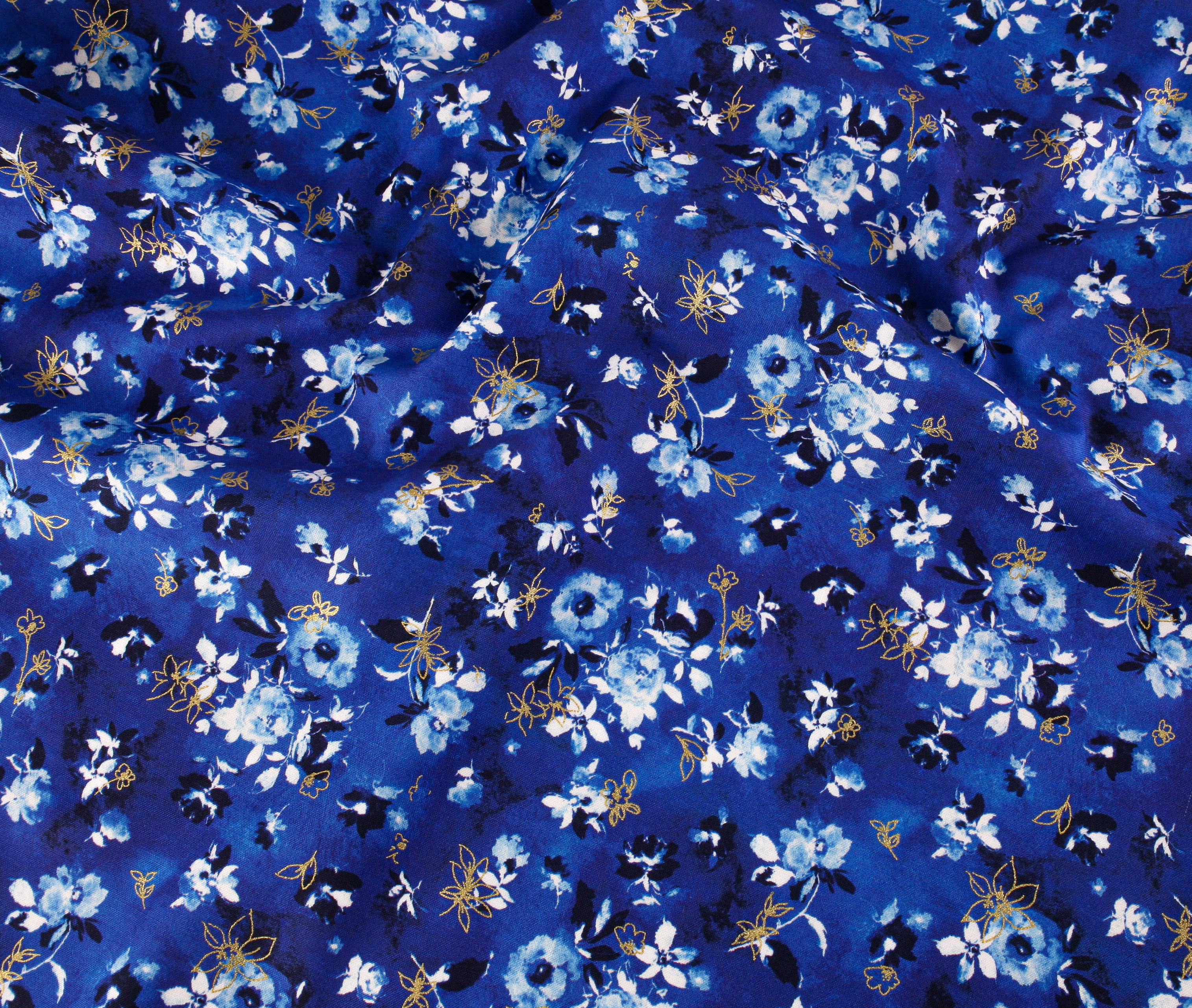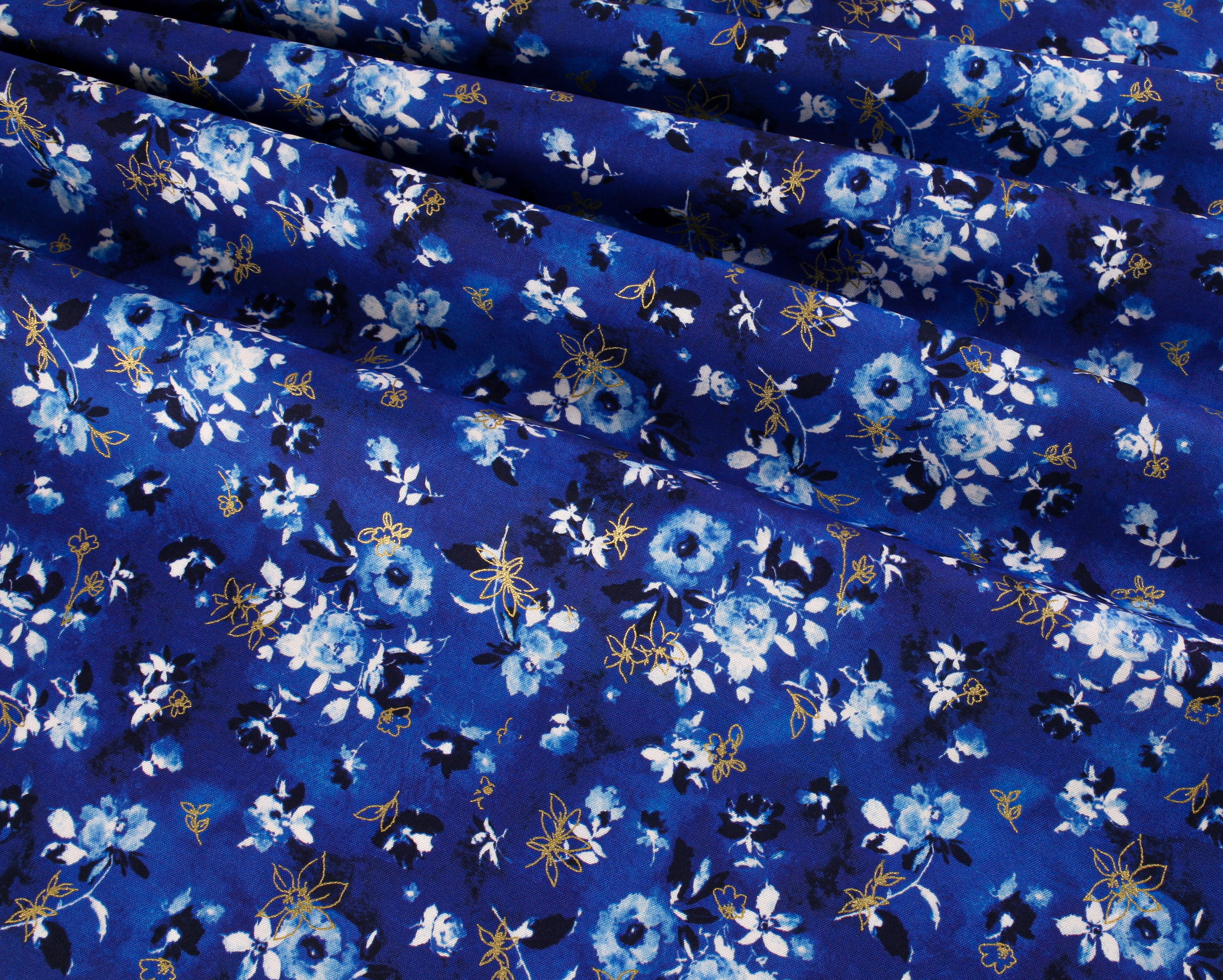 Robert Kaufman Fabrics – Cobalt Bliss Gold Metallic: Blue Bouquet