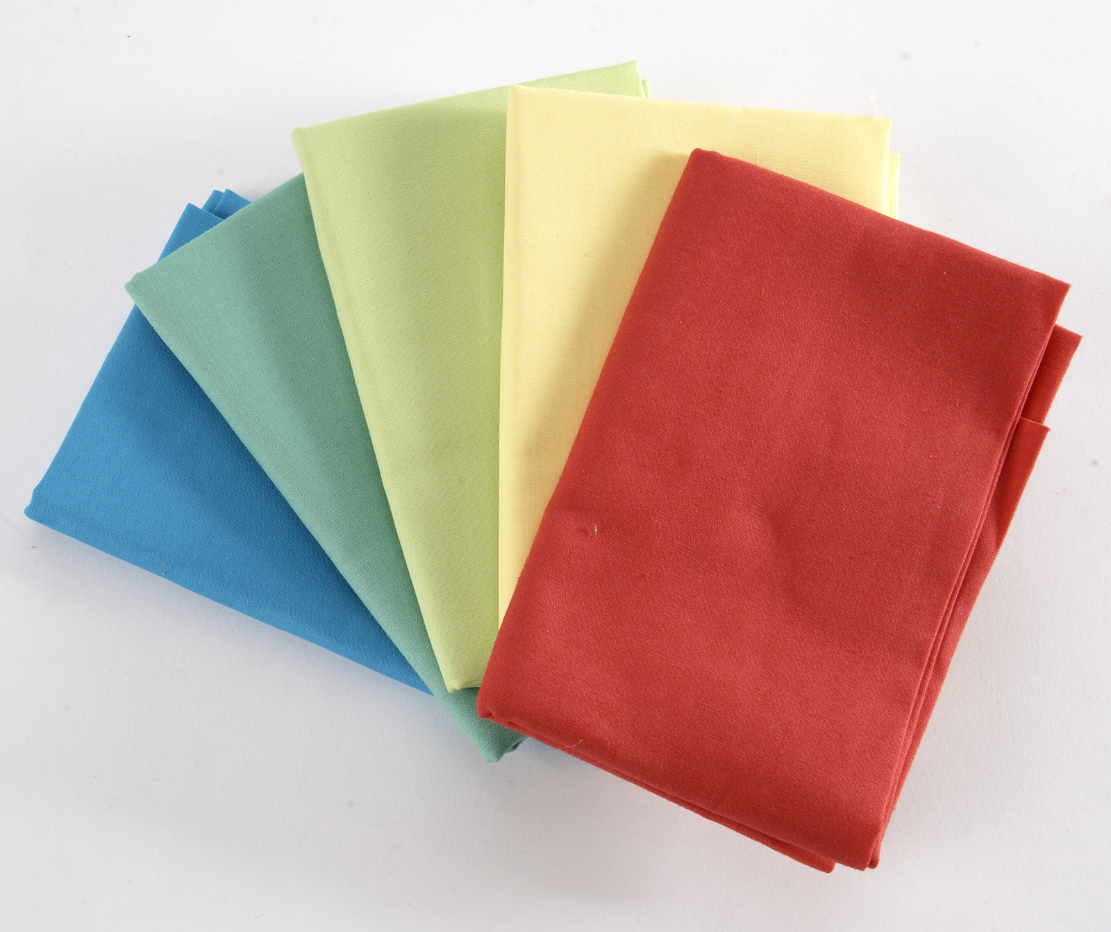 Pack of 5 cotton fat quarters measuring 54 x 45cm in a mix of vibrant colours. Can be used together or mixed with other packs in a variety of quilting projects. Great for making face masks.