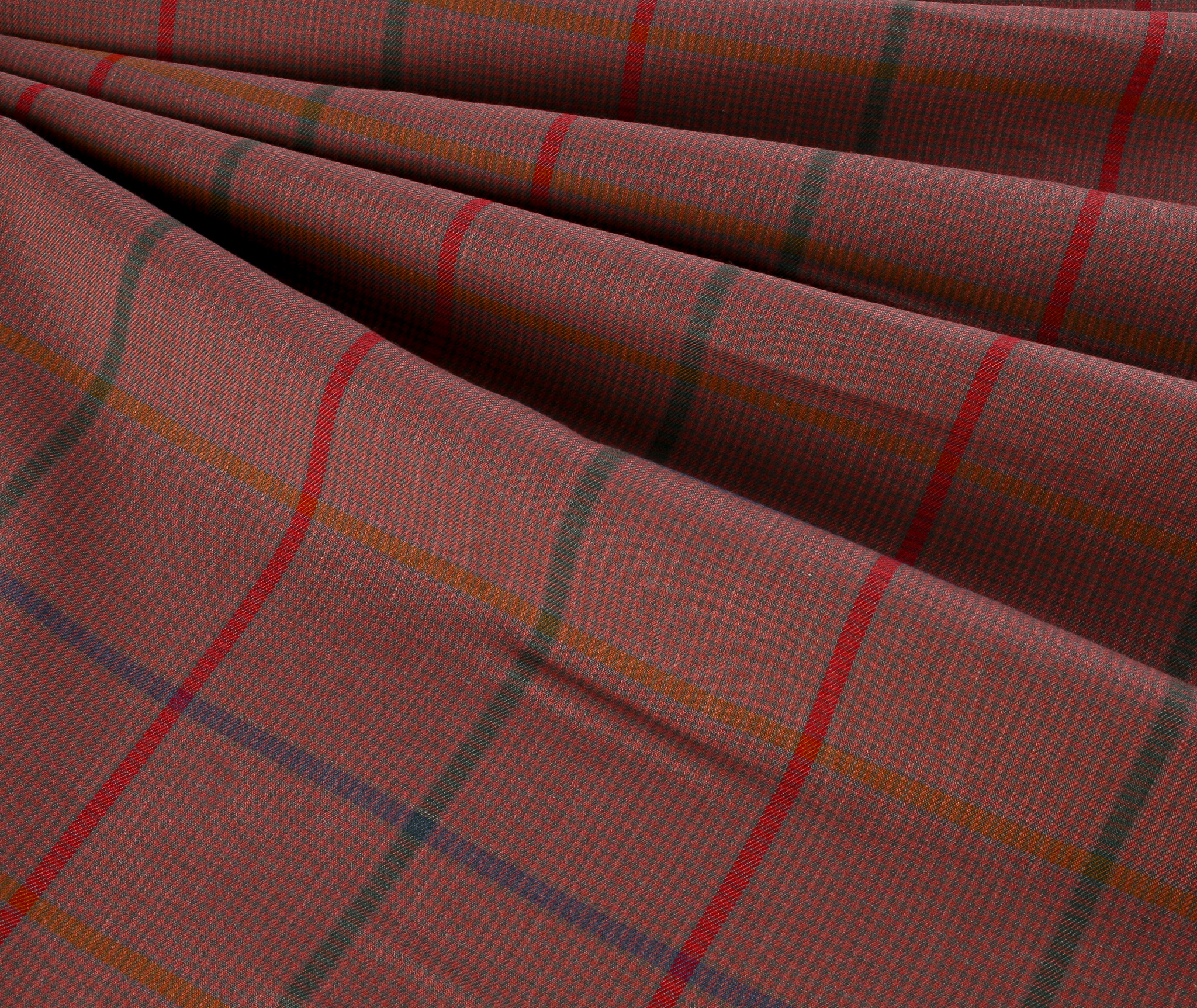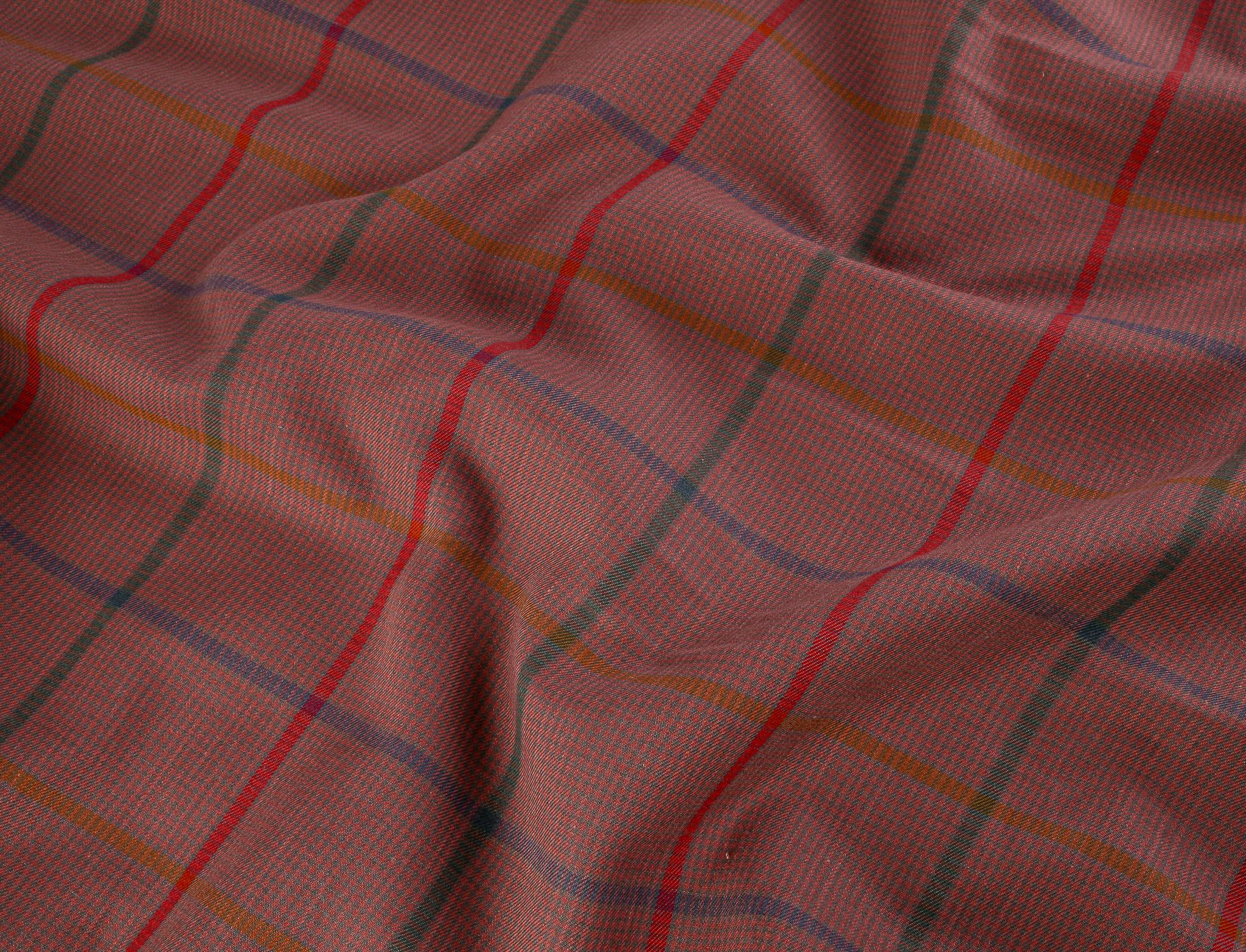 45″ wide lightweight soft cotton fabric, pinky taupe with green, blue and red check