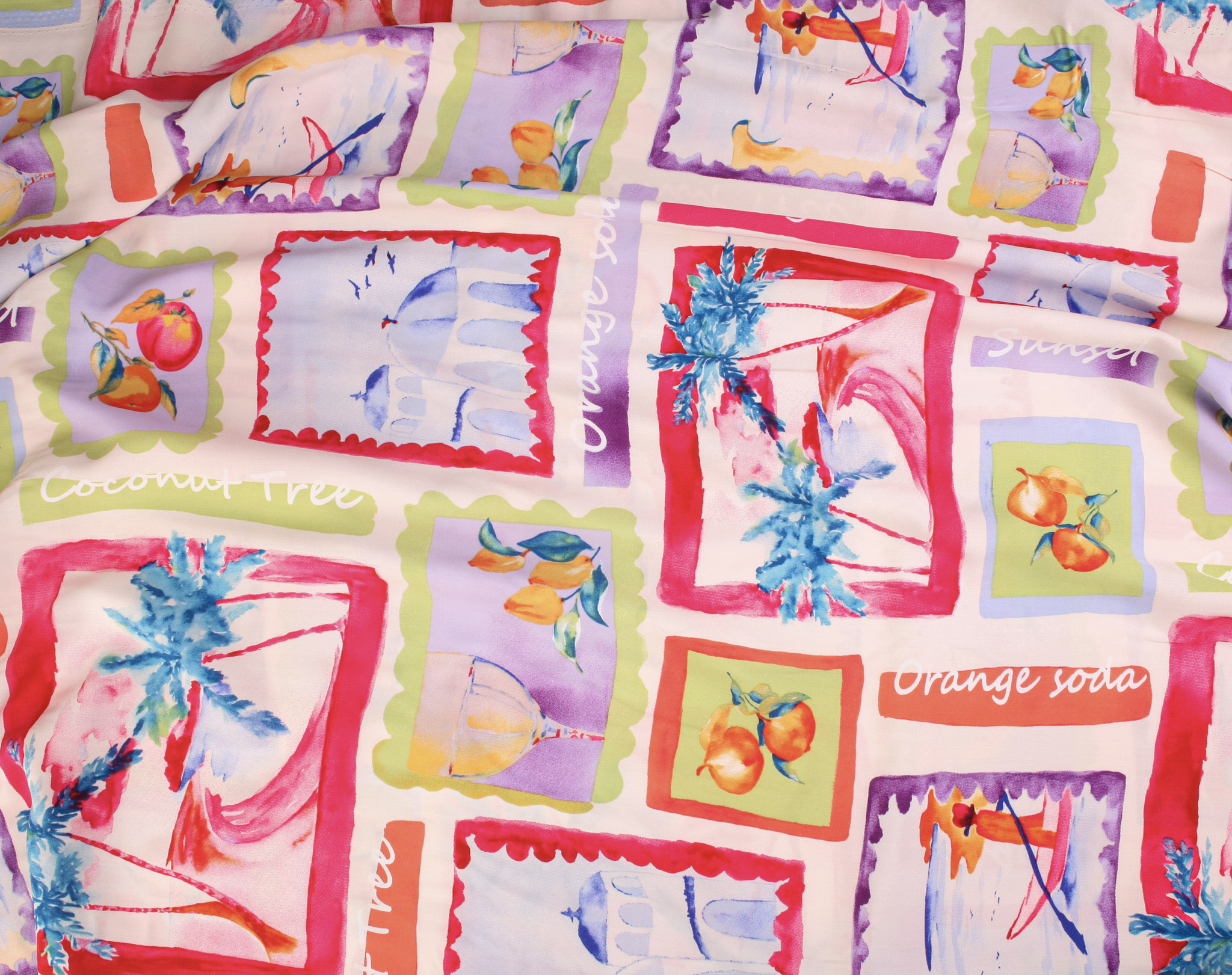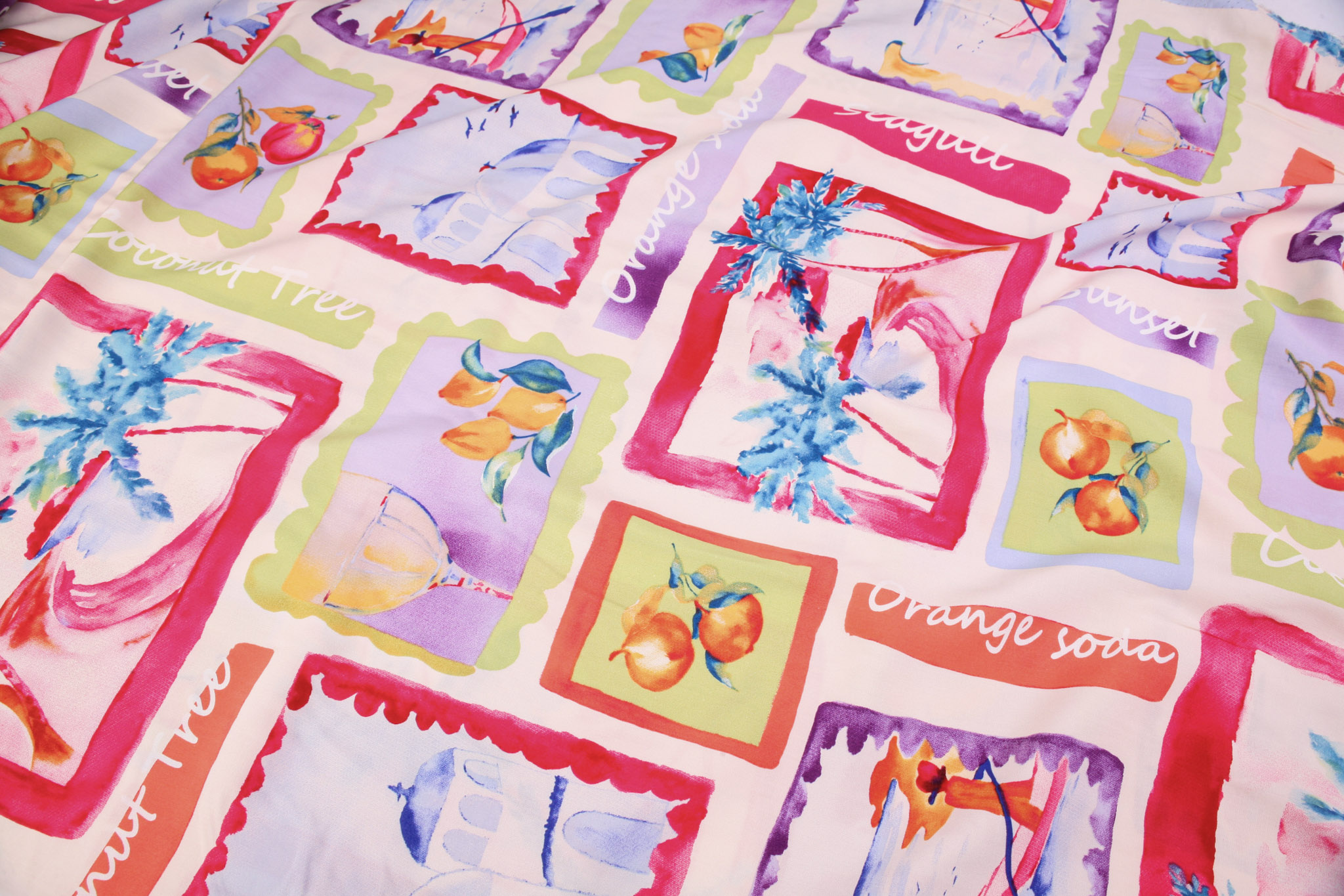 Bring a touch of travel-inspired charm to your sewing with this Viscose Holiday Stamps fabric. The lightweight viscose has a soft drape and breathable feel, making it ideal for dresses, blouses, skirts and relaxed trousers.