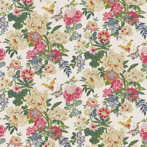 Sanderson’s Chinese inspired decorative style of the 1920’s Jeffrey & Co. archive design is adorned with large peonies and tropical butterflies. Stunning cotton fabric for bag making and homewares.