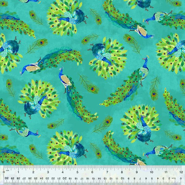 Colourful peacocks promenade through the garden in all their colourful glory. Plumage in emerald green, royal blue, bright lime and deep teal adorn this sophisticated collection. Rounded out by an intricately designed Jacobean vine, floating feathers, a scalloped pattern and an all-over texture that will surely delight.