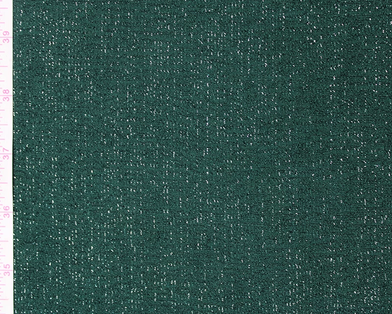 This jersey fabric features lurex sparkles running throughout the surface. The shiny lurex on the front gives it a sandy texture while the woven backing gives it a soft finish.