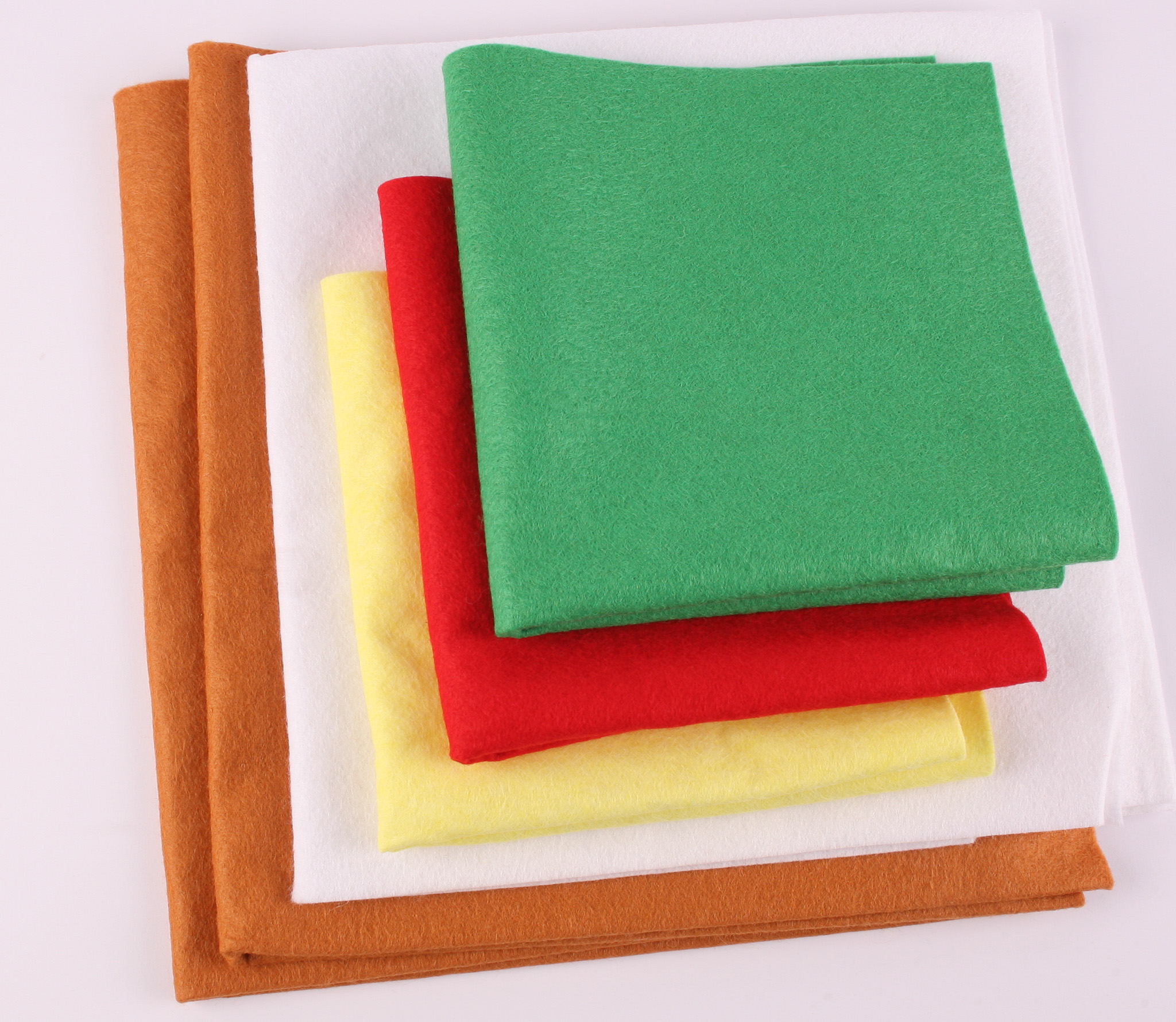 Wool/viscose felt squares, two x 18″ squares rust, one 18″ square white, 12″ square red, green and yellow.