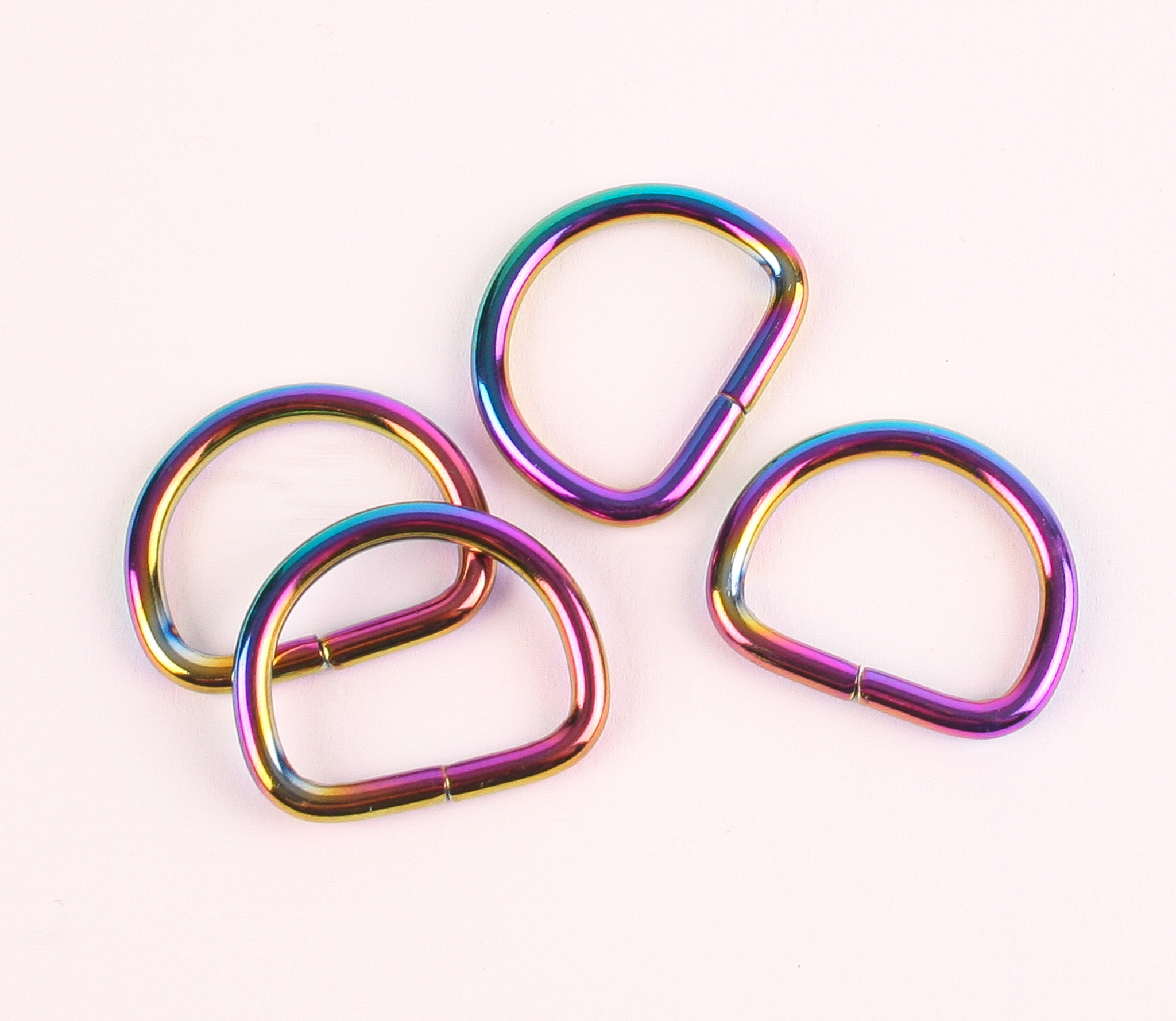 Rainbow metal hardware, often seen on items like zippers, buckles, and clasps, is created through a process called anodization, which involves passing electricity through the metal to produce a light-reflective oxide on its surface, resulting in a colourful effect. The thickness of the oxide layer determines the colour of the light that is reflected, creating the rainbow effect. Rainbow hardware may have a double finish, with a base colour (like black) and then the rainbow effect applied on top.
