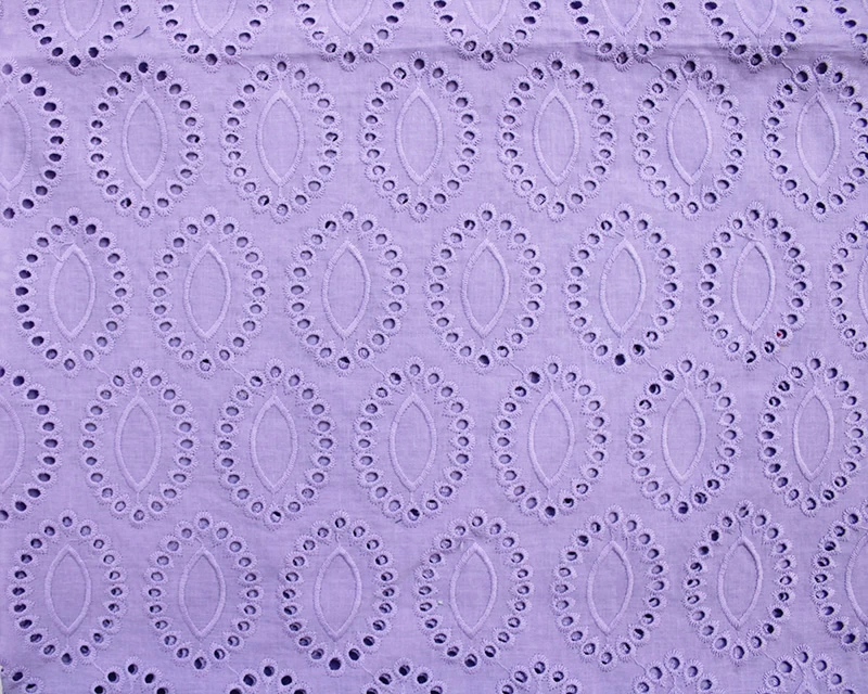 A lightweight and breathable cotton fabric featuring delicate embroidered eyelets, perfect for elegant clothing, summer wear, and craft projects.