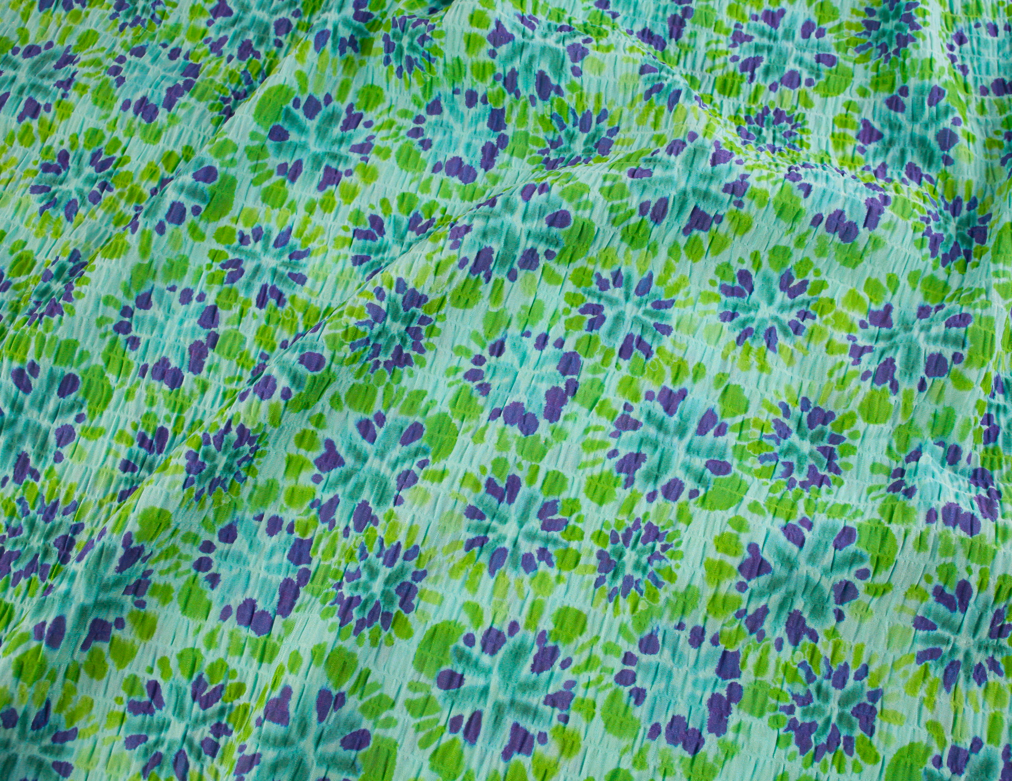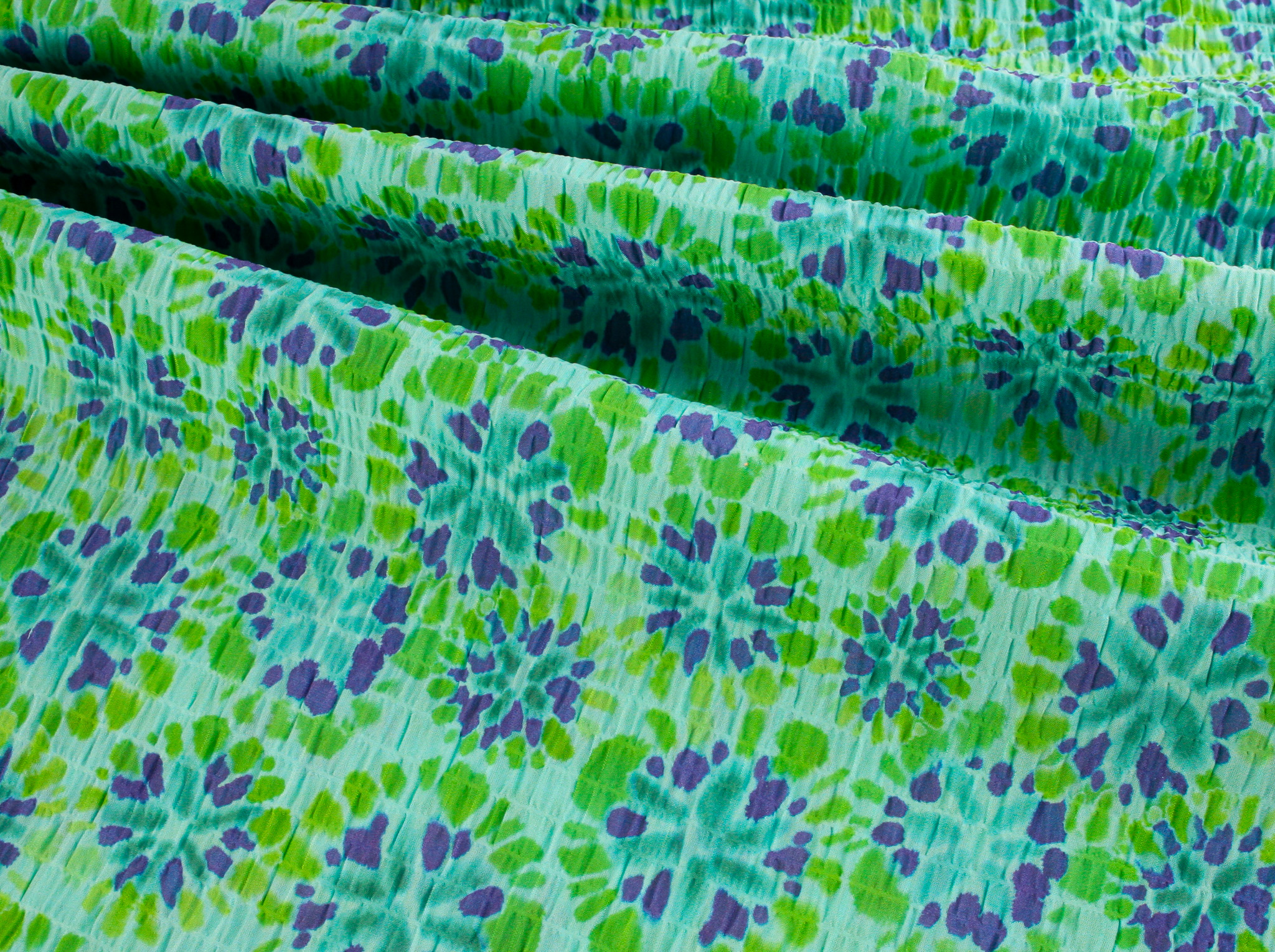 Ex Zara green and blue ties die effect crinkle fabric – deadstock