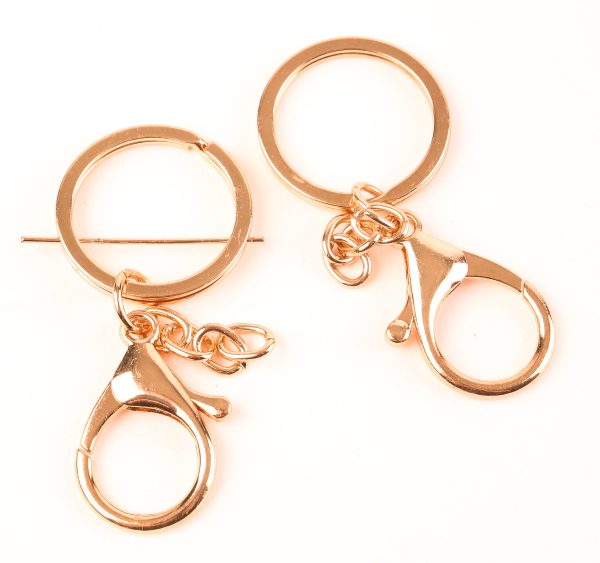 2 x key rings with swivel snap attached, the inside of the ring measures 1″ across. Perfect for attaching keys to the inside of a bag! One ring will come with a pin which makes it easy to open them.